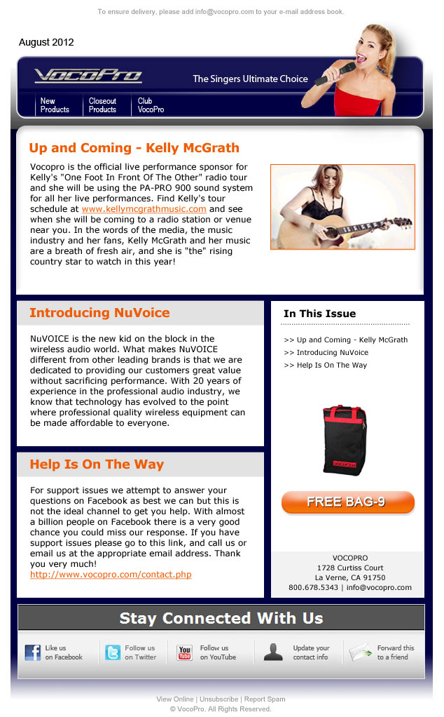 I was asked to quickly design a newsletter for VocoPro The Singers Ultimate Choice, located in La Verne. Every once in a while you get those last min projects before the a launch of a product. Quick design for VocoPro team